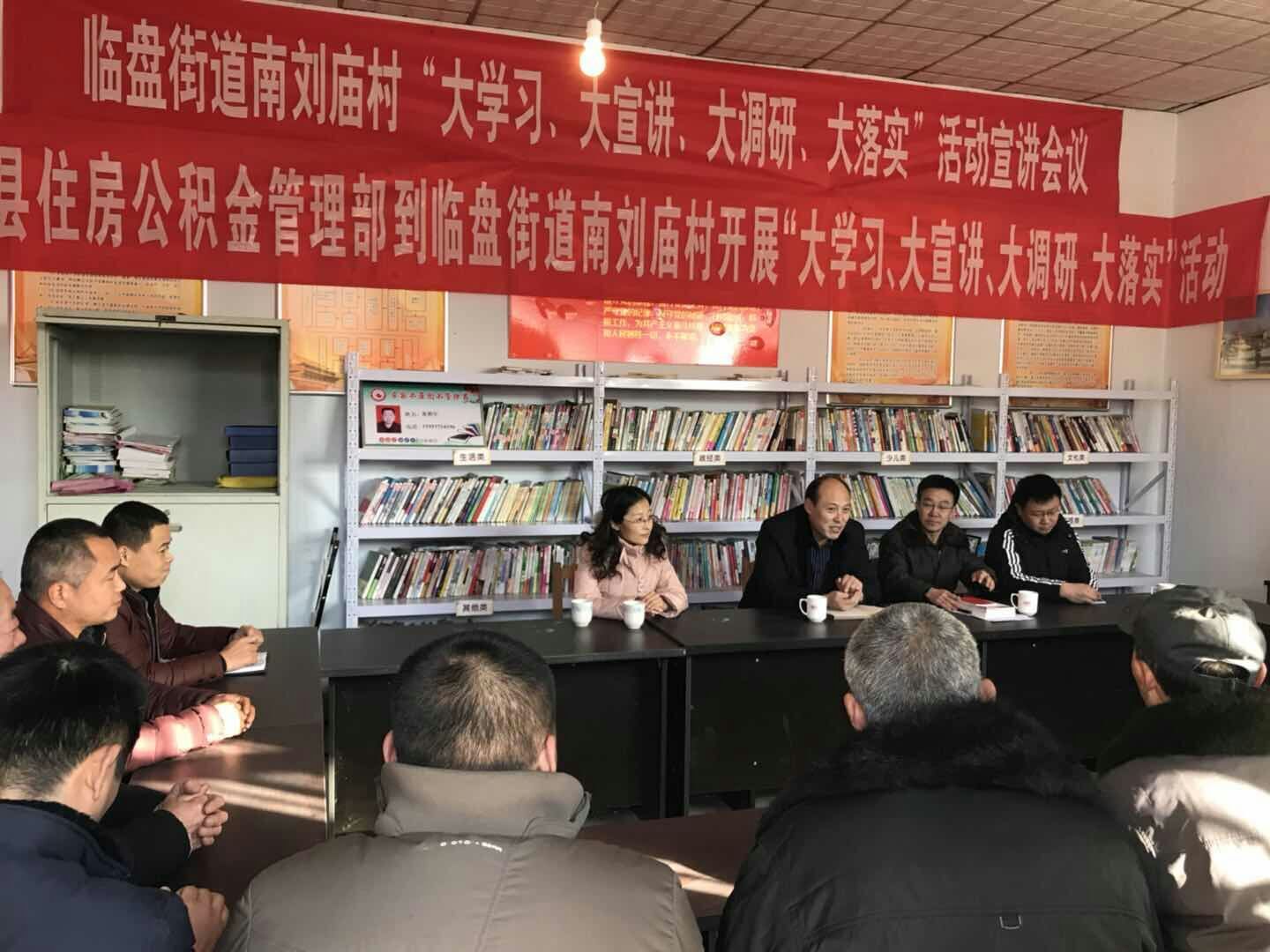 按照市住房公积金管理中心和县委、县政府开展学习贯彻十九大精神“大学习、大宣讲、大调研、大落实”活动的要求,12月25日临邑管理部到联系村庄临盘街道办事处南刘庙村开展宣讲走访活动。